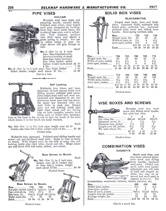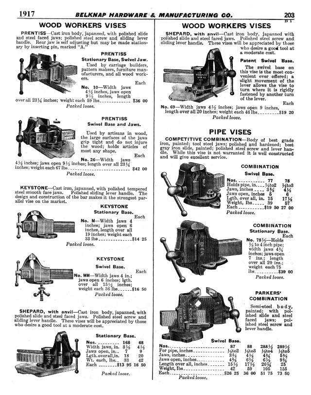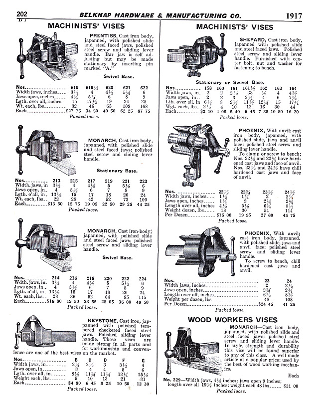 Page 202, Bench, Machinist and Woodworkers Vises.